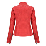ADELIJA ist eine wunderschöne Lederjacke, die durch ihren eleganten Look und ihre hochwertige Verarbeitung begeistert. Sie ist aus weichem und geschmeidigem Leder gefertigt, das sich angenehm anfühlt und mit der Zeit noch weicher und schöner wird. Die Passform ist normal und bietet einen hohen Tragekomfort, was der Jacke einen modernen und femininen Look verleiht.