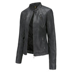 Die Jacke hat einen symmetrischen Reißverschluss und einen schicken Stehkragen mit Knopf, der besonders stilvoll aussieht, wenn er offen getragen wird. Sie hat mehrere Taschen, die ausreichend Platz für Hände, Schlüssel und andere Kleinigkeiten bieten.