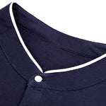 Insgesamt hat dieses Hemd einen minimalistischen, aber sauberen Look, bei dem der Kragen jedoch eine zusätzliche Borte in einer anderen Farbe enthält, die zu den Knöpfen passt. Es ist ein subtiles Detail, das zusätzlichen Charme und Attraktivität verleiht.