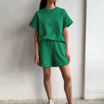 - Kombinationsmöglichkeiten: Das Set ermöglicht es Ihnen, Sweatshirt und Shorts für einen koordinierten Look miteinander zu kombinieren oder sie separat zu tragen, um verschiedene Outfits zu kreieren.
