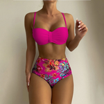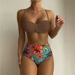 Unser LAKELYN Bikini-Set vereint elegante Minimalismus mit verspieltem Design: Das hochgeschnittene Unterteil besticht durch ein florales Muster, während das Oberteil in klassischer Einfarbigkeit eine zeitlose Silhouette schafft. Diese durchdachte Kombination bietet sowohl visuelles Interesse als auch stilistische Vielseitigkeit für Ihren Sommer.