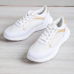 Die SENJA Modische Turnschuhe sind die perfekte Kombination aus Stil und Komfort. Sie sind aus hochwertigen Materialien gefertigt, mit einem goldglänzenden Obermaterial und einem bequemen Futter. Die Schnürung sorgt für einen sicheren Sitz, während die strapazierfähige Gummisohle eine hervorragende Traktion bietet. Egal, ob du auf der Straße spazieren gehst oder im Fitnessstudio trainierst, mit diesen Sneakern siehst du den ganzen Tag lang stylisch und bequem aus.