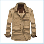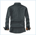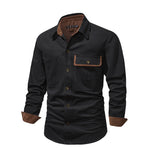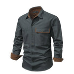 Das Vlasta Männerhemd verfügt über zwei Fronttaschen und eine durchgehende Knopfleiste.