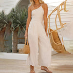 - Elegante Silhouette: Der Jumpsuit hat eine schmeichelhafte Silhouette, mit der Sie überall die Blicke auf sich ziehen werden. Der ärmellose Schnitt und die lockere Passform machen es zu einem großartigen Kleidungsstück für jede Gelegenheit.