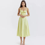- In unserem eleganten MAIKE Elegantes midikleid werden Sie sich ultrafeminin fühlen - perfekt für Gartenpartys im Frühling und Sommer. Das Kleid ist aus weichem Polyester in einer schönen Druckfarbe gefertigt und hat ein Korsett-Oberteil, mit dem Sie die Passform anpassen können, sowie einen schönen Spitzenrücken.