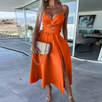 Sind Sie bereit für einen atemberaubenden Auftritt bei Ihrem nächsten besonderen Anlass? Der tiefe V-Ausschnitt sorgt für einen Hauch von raffinierter Eleganz, während die drapierten, hohlen Details Ihre Kurven wunderbar betonen. Der strategisch platzierte Seitenschlitz ist ein aufreizendes Element, mit dem Sie bei jedem Schritt genau das richtige Maß an Bein zeigen können. Das Kleid hat praktische Taschen, die Stil und Funktionalität auf einfache Weise verbinden. Egal, ob Sie eine Frühlingshochzeit, eine Sommerparty oder eine glamouröse Abendveranstaltung besuchen, dieses vielseitige Kleid ist eine sensationelle Wahl, in der Sie sich wie ein Star fühlen werden.