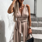 Ein fließender, lockerer Schnitt mit einer Vielzahl von Konturen, die Ihre Figur betonen, ohne auf Komfort zu verzichten. Dieses elegante Kleidungsstück ist nicht nur ein sommerlicher Jumpsuit, sondern bietet Ihnen auch die Möglichkeit, ihn auf verschiedene Weise zu tragen, angefangen bei seinem vielseitigen Oberteil.