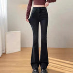 Das hoch taillierte Design betont nicht nur Ihre Kurven, sondern sorgt auch für eine schmeichelhafte Silhouette. Die Stretch-Glockenhose verleiht Ihnen einen Hauch von Retro-Chic und sorgt dafür, dass Sie überall eine gute Figur machen. Schräge Taschen vereinen Funktionalität und Raffinesse in diesem modischen Stück.