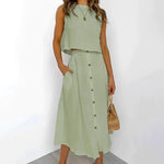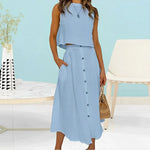 Genießen Sie die Vorzüge des warmen Wetters mit diesem stilvollen Set in einer entspannten Silhouette. Zeigen Sie Ihren Sinn für Stil mit dem Rundhalsausschnitt und dem klassisch-modernen Design, das zu jedem Freizeitlook passt. Der sehr weiche und anschmiegsame Stoff unseres Sets fühlt sich luftig und weich an, ohne durchsichtig zu sein. Leichtigkeit und Eleganz den ganzen Tag lang.