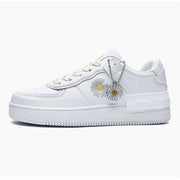 Frischen Sie Ihren Look mit diesen bezaubernden Gänseblümchen-turnschuhe auf. Das Obermaterial aus weißem Stoff ist mit einem zarten Gänseblümchen verziert, während die robuste Gummisohle für ausgezeichnete Traktion und Stabilität sorgt. Die weißen Schnürsenkel sorgen für einen sicheren Sitz und die gepolsterte Innensohle bietet ganztägigen Komfort. Perfekt für jedes Freizeit-Outfit.